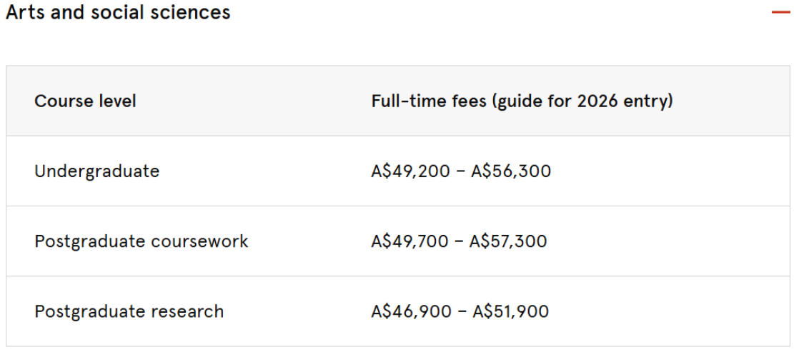 人文社科类:本科和研究生均约4.2万澳元/年(约20.3万人民币)