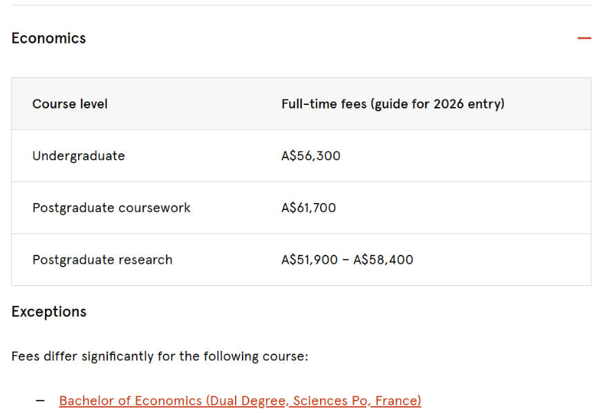 专业差异:人文社科与语言类相对友好(约4万澳元/年),健康与医学科学领域明显偏高,临床医学可达12万澳元/年(约58万人民币)。