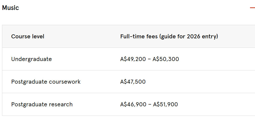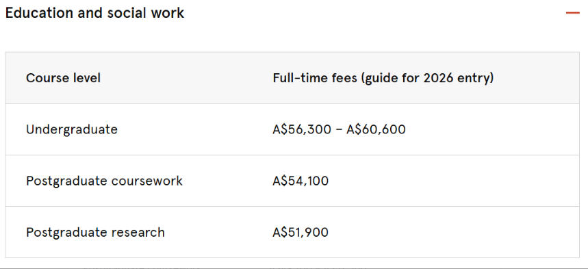 本科及研究生课程年均学费约4.7万-6.2万澳元,折合人民币约22.7万-30万元/年。学费区间相对集中,便于家庭提前规划,无需担心专业选择导致的费用突增。