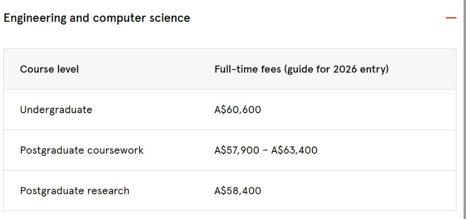 理工类:本科和硕士约5.6万澳元/年(约27.1万人民币)
